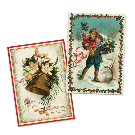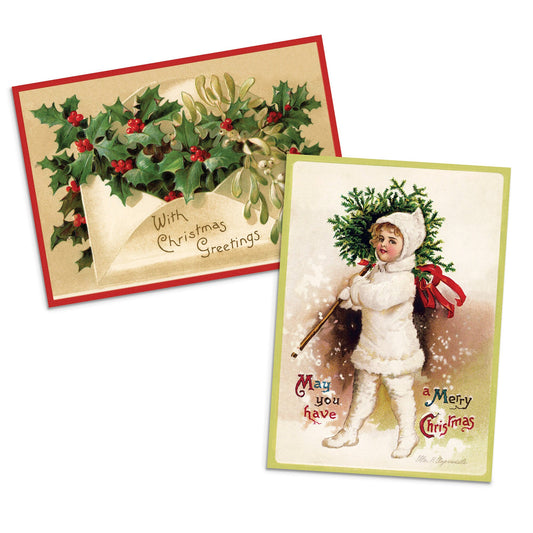 Victorian Greeting Cards Christmas Card Set of 10 Xmas Tree New Year Winter Edwardian English British Vintage Retro Santa Angel Cute Unique