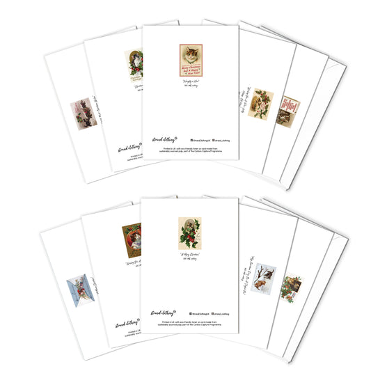 Victorian Cat Christmas Cards – Set of 10 | Vintage Kitten Holiday Greetings