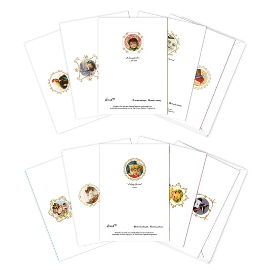 Victorian Greeting Cards Christmas Card Set of 10 Xmas Tree New Year Winter Edwardian English British Vintage Retro Santa Angel Cute Quirky