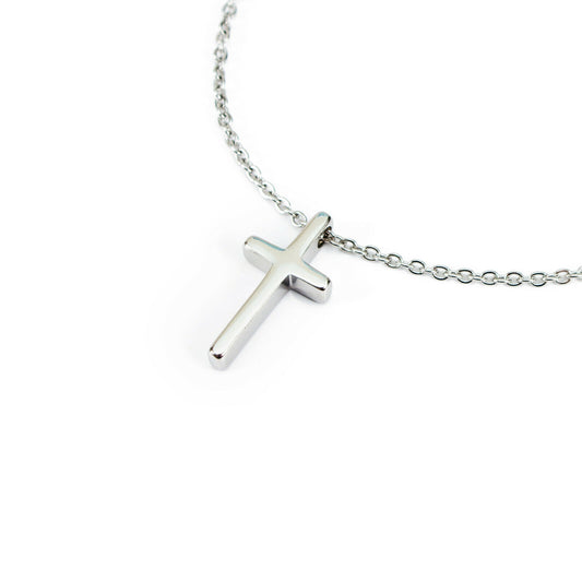 Cross Pendant Necklace with Cable Chain in Silver Finish Stainless Steel