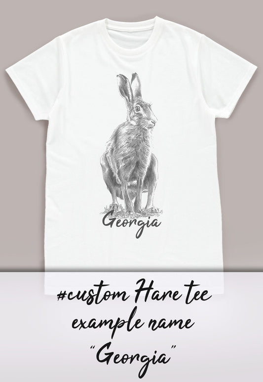 Custom Name Hare T Shirt Personalized Your Text Artist Pencil Sketch Drawing Rabbit Bunny Vegan Animal Cute Nature Men's Women's Printed Tee
