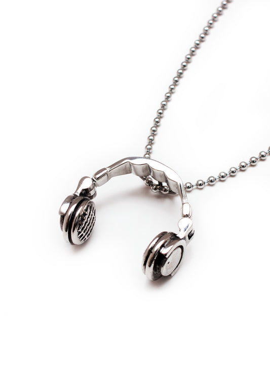 Headphones Pendant Necklace with Ball Chain in Silver Finish Stainless Steel