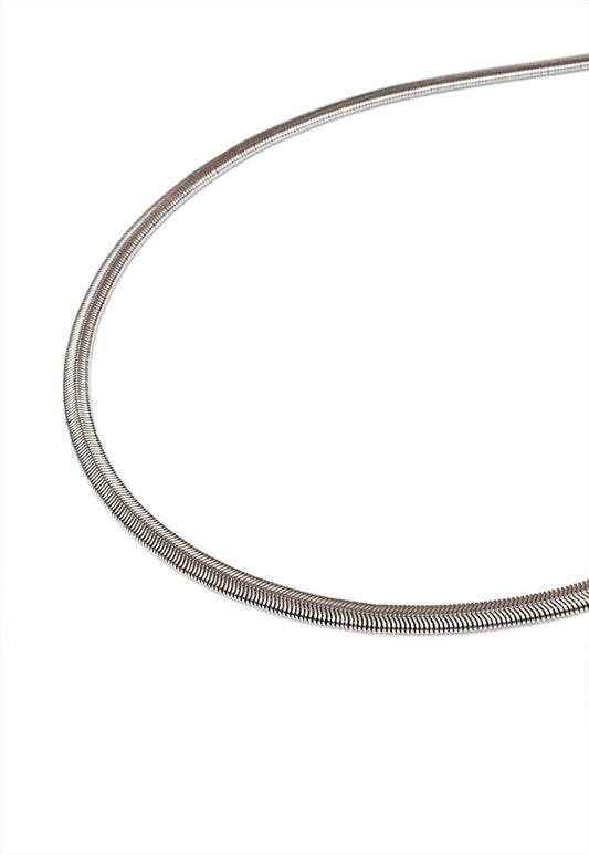 Herringbone Chain Necklace in Silver Finish Stainless Steel – Smooth Flat Link