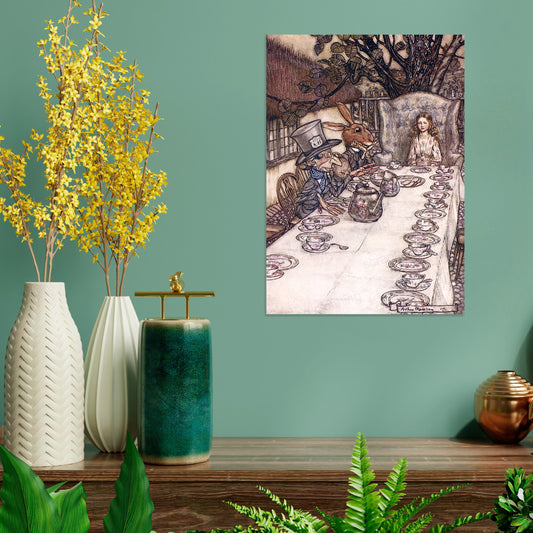 Alice In Wonderland Vintage Art Print Poster Wall Antique Book Illustration Mad Hatter Tea Party Rackham Victorian Edwardian Beautiful A3