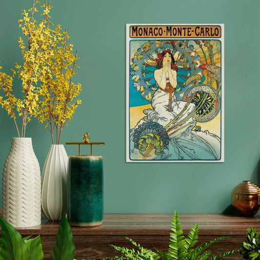 Alphonse Mucha Monaco Monte Carlo Vintage Art Print Poster Wall Antique Quirky Illustration Fairy Floral Victorian Edwardian Beautiful Woman