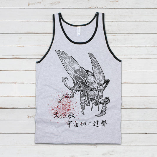 Japanese Robot Fly Invasion Tank Top Kaiju Anime Print Monster Horror Martial Arts Samurai Geek Sci Fi B Movie Womens Mens Printed Vest Cami