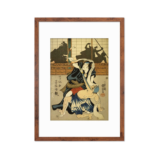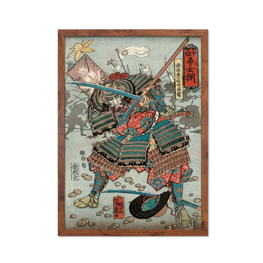 Japanese Samurai Art Print Poster Woodblock Ukiyo-e Style Framed Mounted Wall Akashi Ridayu Utagawa Kuniyoshi Japan Bushido Sword Musha-e