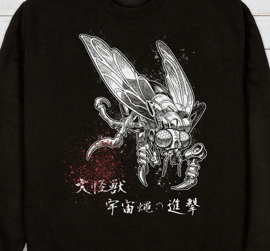 Japanese Robot Fly Sweatshirt Invasion Anime Manga Print Monster Horror Geek Sci Fi Kaiju B-Movie Aesthetic Printed Womens Mens Jumper Top