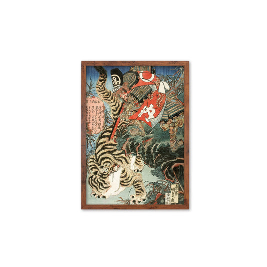 Japanese Samurai Art Print Poster Woodblock Ukiyo-e Style Framed Mounted Wall Samurai Watonai Tiger Sword Monster Calligraphy Bushido A3 A2
