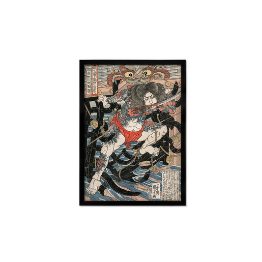 Japanese Samurai Art Print Poster Woodblock Ukiyo-e Rori Hakucho Chojun Kuniyoshi Framed Mounted Wall Warrior Sword Katana Tattoo A3 A2