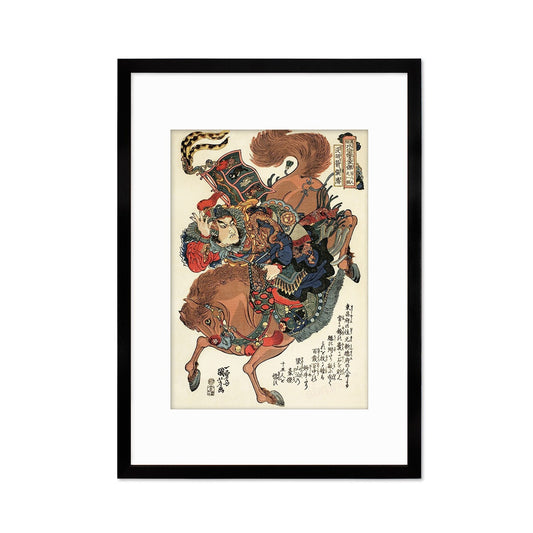 Japanese Samurai Art Print Poster Woodblock Ukiyo-e Rori Zhang Qing Buusen Chosei Kuniyoshi Samurai Horse Framed Mounted Wall Warrior A3 A2