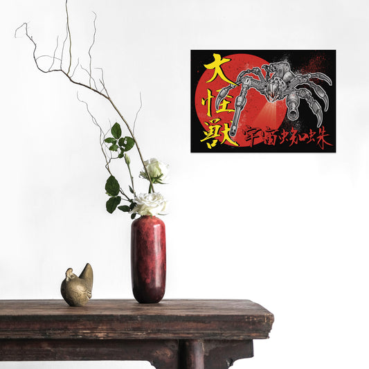 Japanese Robot Spider Attack Wall Art Print Poster Framed Mounted Kaiju Anime Monster Horror Martial Arts Samurai Geek Sci Fi B Movie A3 A2