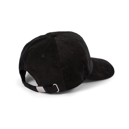 Japanese Style Cord Baseball Cap with Wooden Detail - Black