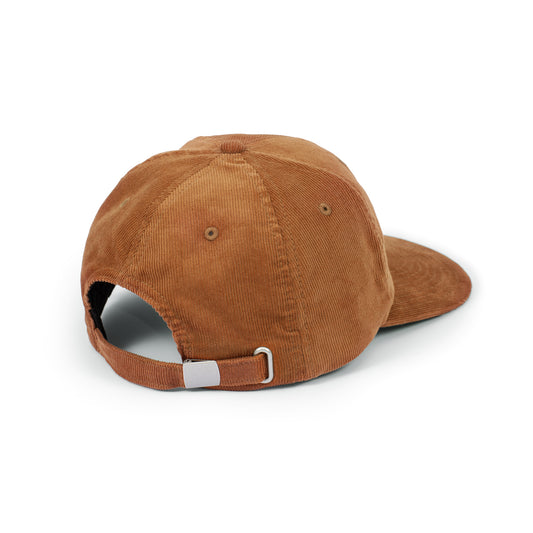 Japanese Style Cord Baseball Cap with Wooden Detail - Camel Brown