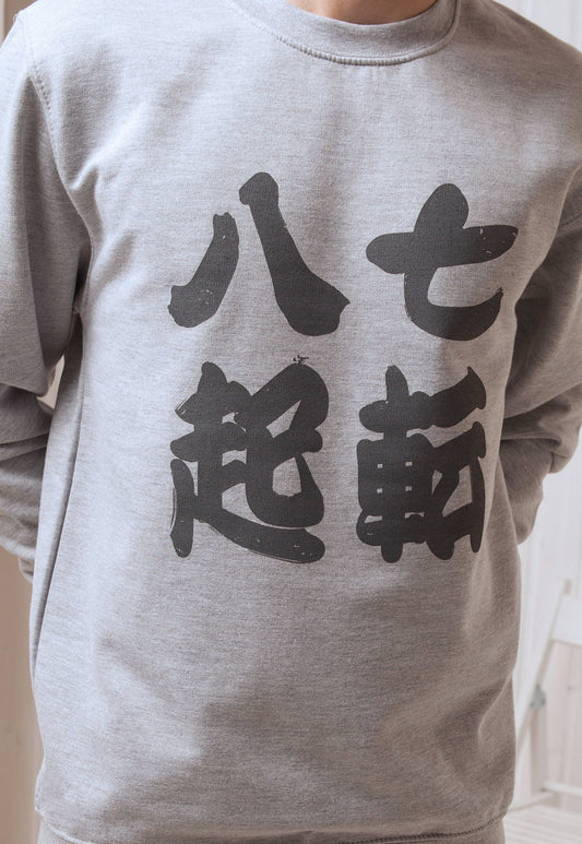 Japanese Sweatshirt Shichiten Hakki Nanakorobi Yaoki Japan Calligraphy Aesthetic Kanji Anime Manga Printed Jumper Long Sleeve Mens Womens