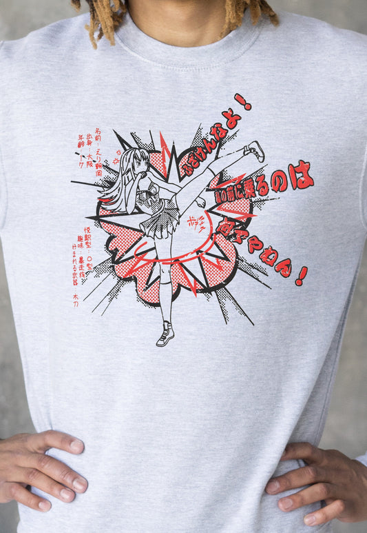 Japanese Sweatshirt High Kick Japan Anime Manga Kawaii Girl Comics Karate Taekwondo Kaminari Screen Printed Long Sleeve Pullover Jumper Top