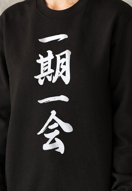 Japanese Sweatshirt Ichigo Ichie Japan Writing Kanji Calligraphy Buddhist Yoga Zen Inspirational Quotes Mens Womens Jumper Pullover Sweater