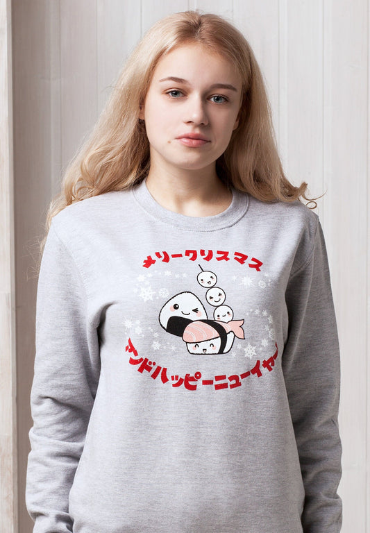 Japanese Sweatshirt Kawaii Sushi Christmas Party Japan Anime Manga Holiday Xmas Printed Mens Womens Jumper Long Sleeve Top Sweater Pullover