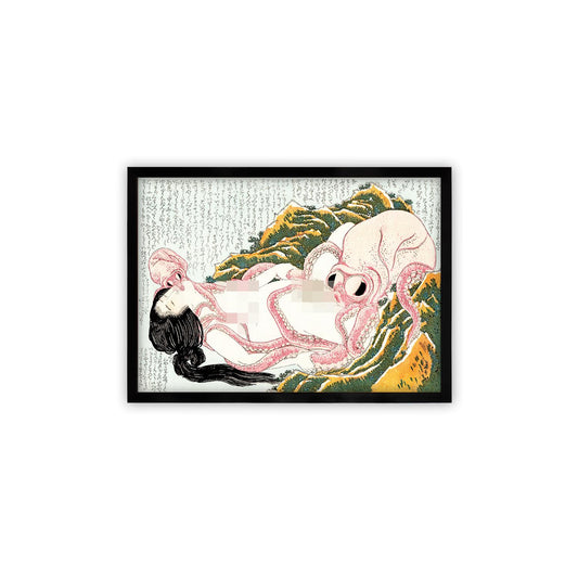 Japanese Shunga Art Framed Mounted Ukiyo-e Wall Decor Print Poster Woodblock Ama Diver Octopuses Hokusai Sensual Calligraphy Japan Tattoo