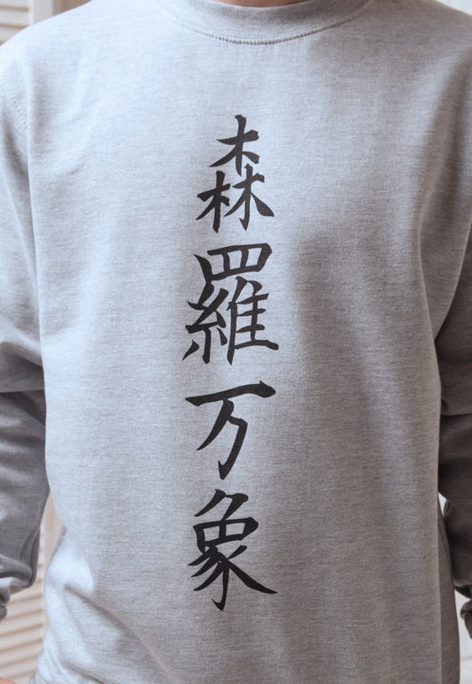 Japanese Sweatshirt Japanese Shirt - Universe (Shinra Bansho) - Japan Writing Calligraphy Kanji Minimal Martial Arts Yoga Jumper Long Sleeve