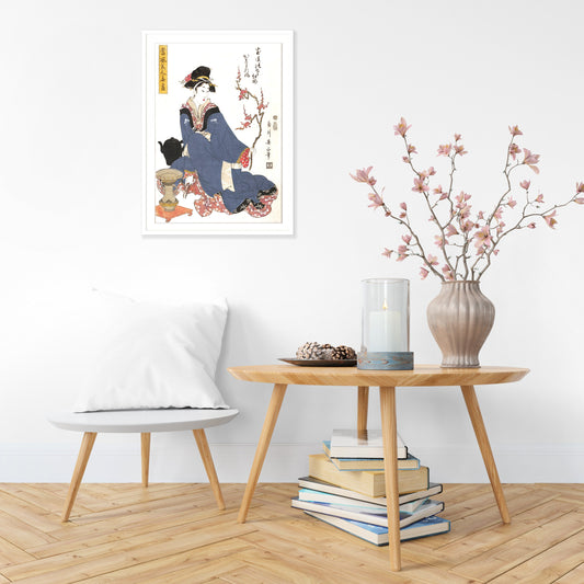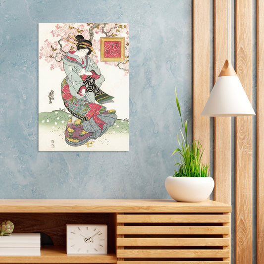 Japanese Ukiyo-e Art Print Poster Woodblock Wall Art Kikukawa Eizan Geisha Maiko Sakura Plum Blossom Tattoo Beautiful Japan Calligraphy A3