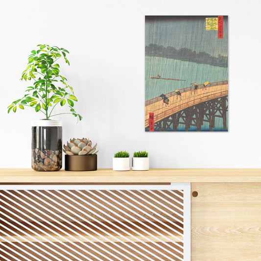 Japanese Ukiyo-e Art Print Poster Woodblock Wall Art Hiroshige Sudden Shower over Shin-Ohashi Bridge and Atake Rain Beautiful Calligraphy A3