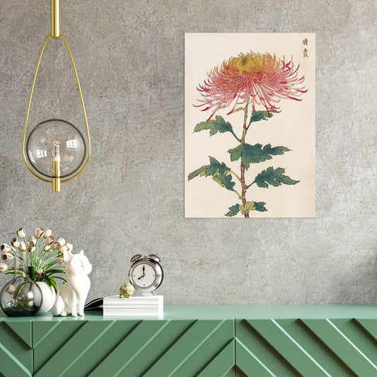 Japanese Ukiyo-e Art Print Poster Woodblock Wall Art Keika Hasegawa Chrysanthemums Flowers Landscape Floral Beautiful Japan Calligraphy A3