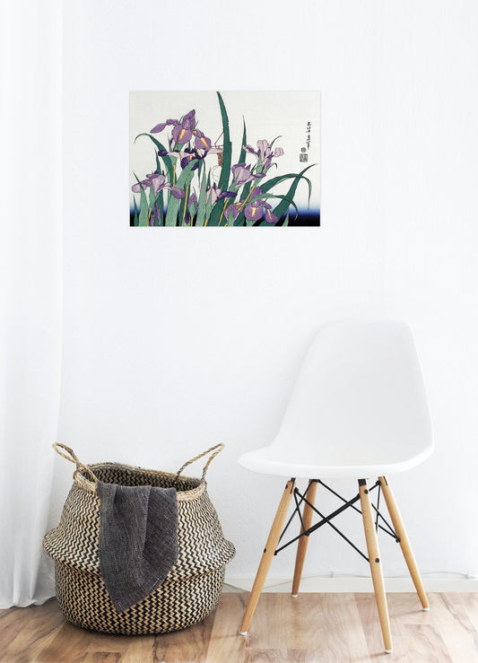 Japanese Ukiyo-e Art Print Poster Woodblock Wall Art Hokusai Iris Irises Flower Floral Grasshopper Tattoo Beautiful Japan Calligraphy A3