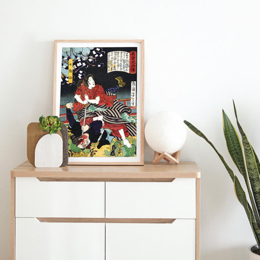 Japanese Ukiyo-e Art Print Poster Woodblock Wall Decor Utagawa Kuniyoshi Samurai Sword Tattoo Warrior Ninja Calligraphy Bushido Kendo A3