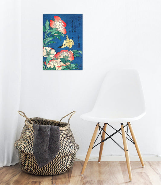Japanese Ukiyo-e Art Print Poster Woodblock Wall Decor Hokusai Flower Floral Peonies Canary Bird Tattoo Beautiful Japan Calligraphy Haiku