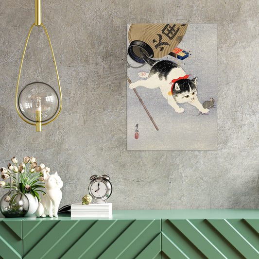 Japanese Ukiyo-e Art Print Poster Woodblock Wall Decor Koson Shoson Kitten and Lantern Cat Neko Kawaii Cute Beautiful Japan Calligraphy A3