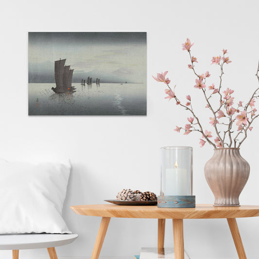 Japanese Ukiyo-e Art Print Poster Woodblock Wall Koson Shoson Sail Boats Night Yacht Sunset Ship Sea Ocean Landscape Seascape Beautiful A3