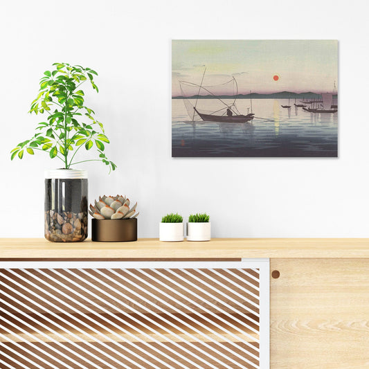 Japanese Ukiyo-e Art Print Poster Woodblock Wall Koson Shoson Boats and Setting Sun Sunset Ship Sea Ocean Landscape Seascape Beautiful A3