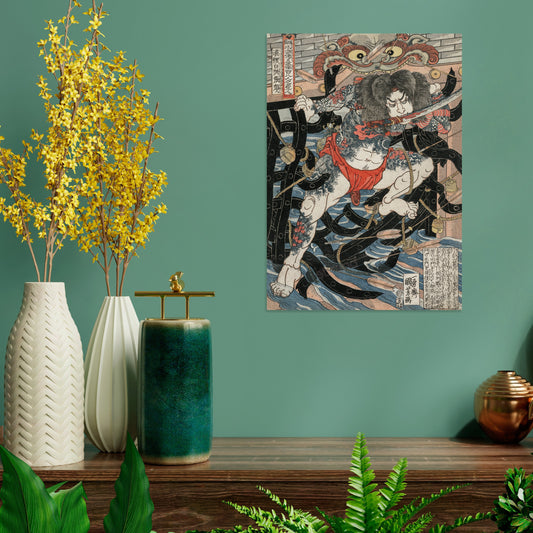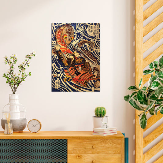 Japanese Ukiyo-e Art Print Poster Woodblock Wall Decor Utagawa Kuniyoshi Samurai Salamander Sword Tattoo Wave Monster Calligraphy Bushido A3