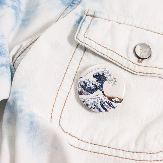 Japanese Ukiyo-e Badge Set · 4× 38mm Pin Buttons · Hokusai & Hiroshige Art