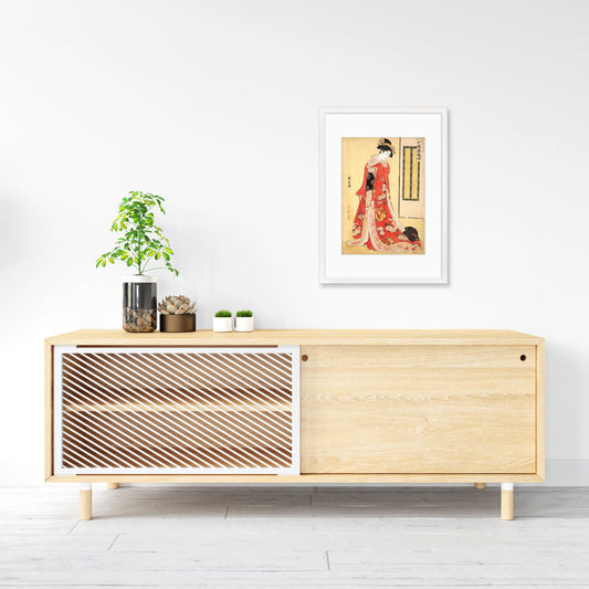 Japanese Ukiyo-e Art Print Poster Woodblock Wall Torii Kiyonaga Kyoto Geisha Maiko Tattoo Beautiful Japan Calligraphy Spaniel Dog Chin A3