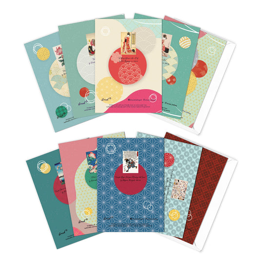 Japanese Ukiyo-e Birthday Cards – Set of 10 | Hiroshige, Kuniyoshi, Geisha, Samurai, Flowers