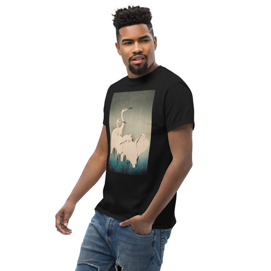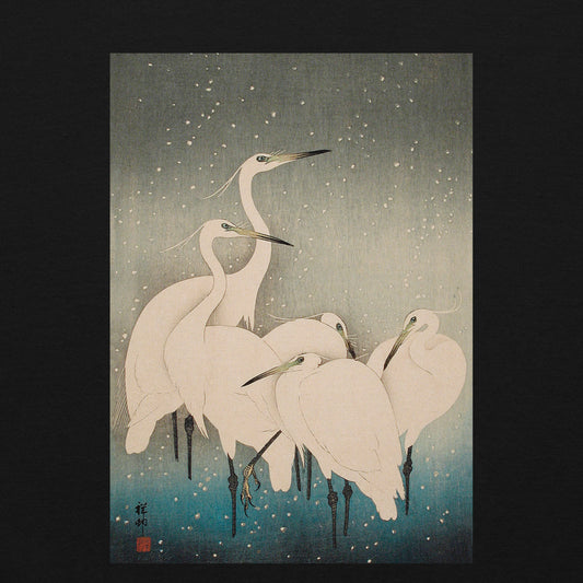 Japanese Ukiyo-e Art T Shirt Mens Womens Unisex Koson Shoson Heron Crane Egret Bird Tattoo Beautiful Kacho-e Calligraphy Nature Calm Tee Top
