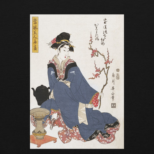Japanese Ukiyo-e Art T Shirt Men's Women's Unisex Kikukawa Eizan Geisha Maiko Sakura Plum Blossom Tattoo Beautiful Japan Calligraphy Tee Top