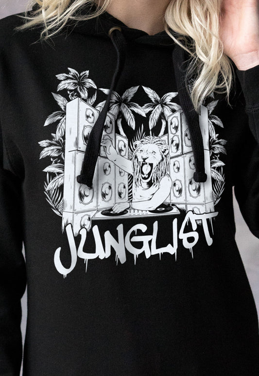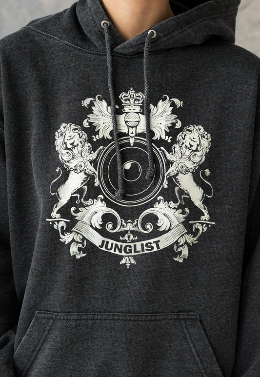 Junglist Coat Of Arms Hoodie Drum and Bass Jungle Crest Female DJ & Music Producer Festival Sweatshirt Washed Brushed Womens Mens Hooded Top