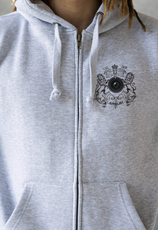 Junglist Coat Of Arms Logo Zip Up Hoodie Jungle Crest Drum and Bass DJ & Synth Music Producer Festival Sweatshirt Mens Womens Hooded Top