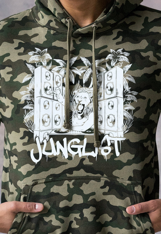Junglist Lion DJ Decks Camo Hoodie Drum and Bass Dreads Jungle Synth Amen Music Producer Camouflage Sweatshirt Mens Women Printed Hooded Top
