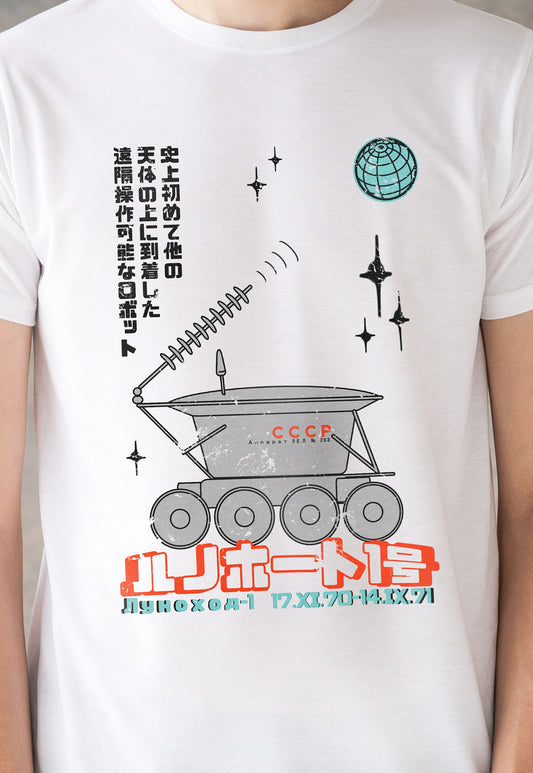 Lunokhod T Shirt - Moon Lunar Rover Space Japanese USSR Science Sci Fi CCCP Astronomy Retro Soviet Cosmos Astronaut Men's Womens Printed Tee