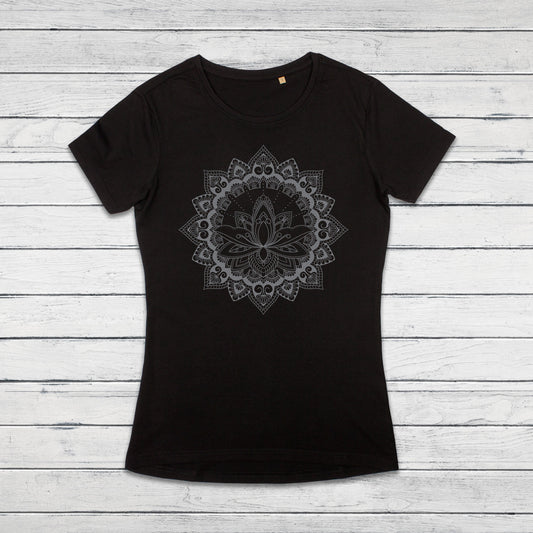 Mandala T Shirt Traditional Indian Henna Tattoo Gold Print Yoga Inspirational Lotus Buddhism Hindu Organic Cotton Womens Girls Printed Tee