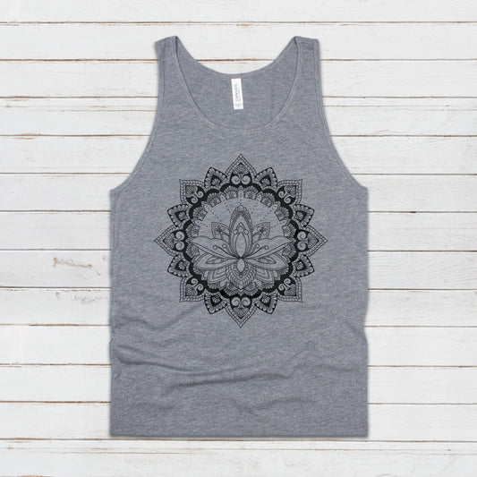 Lotus Mandala Tank Top Traditional Indian Henna Tattoo Gold Print Yoga Inspirational Buddhism Hindu Animal Womens Mens Printed Vest Cami Tee