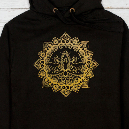 Mandala Lotus Hoodie Indian Henna Tattoo Meditation Hindu Hinduism Design Chakra Art Printed Mens Womens Sweatshirt Gold Printed Hooded Top