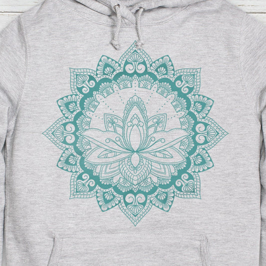 Mandala Lotus Hoodie Indian Henna Tattoo Meditation Hindu Hinduism Design Chakra Tai Chi Yoga Gift Girls Womens Printed Hooded Top Jumper