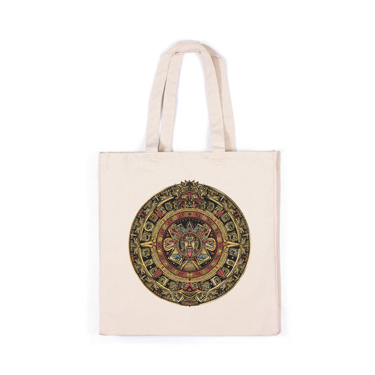 Mayan Calnedar Canvas Tote Bag Traditional Art Yoga Pretty Cool Aztec Symbols Cotton Reusable Shopper Printed Eco Friendly Market Christmas