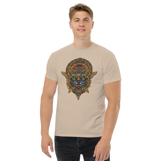 Mayan Tiger Print T Shirt Mens Womens Unisex Aztec Tribal Totem Warrior Art Incan Art Peru Quetzalcoatl Pyramid Mystic Maya Casual Tee Top