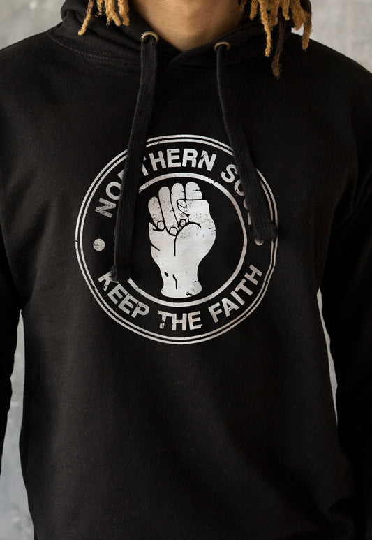 Northern Soul Keep The Faith Hoodie Fist Logo Burnout Distressed Retro DJ 60s 70s Mod Mods Music Producer Mens Sweatshirt Printed Hooded Top